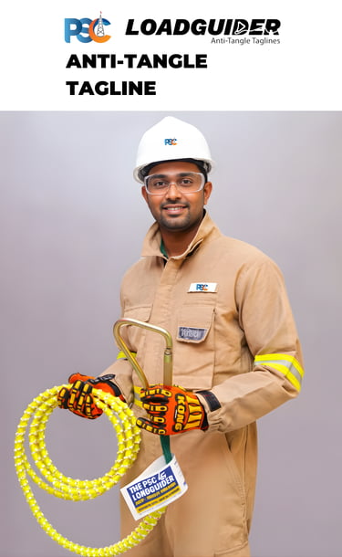 PSC LoadGuider® Anti-Tangle Tagline is a purpose-engineered, high-visibility hand safety tool designed to control suspended loads without direct hand contact during crane and lifting operations. It allows operators to guide, stabilise, and position loads from a safe distance—keeping hands and bodies out of pinch points, crush zones, and the line of fire.